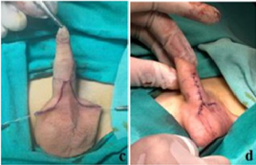 shaft, obscuring the penoscrotal angle []. It is most commonly